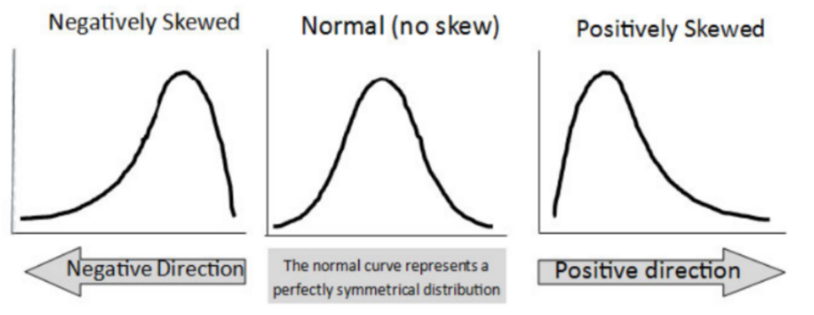 - 위에서 예를 들은 월급과 같이, 관측된 데이터 분포가 어느 한쪽으로 쏠려 있는 정도를 말하며, 이를 수치로 나타낼 수 있음