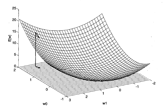 "델타 규칙에 의해 Weight의 변화가 Weight 공간상에 주어지는 오차의 제곱을 높이로 하는 곡면에 대하여 경사 하강을 한다. 즉, 오차의 제곱이 가장 많이 감소하는 방향으로 변화한다. "