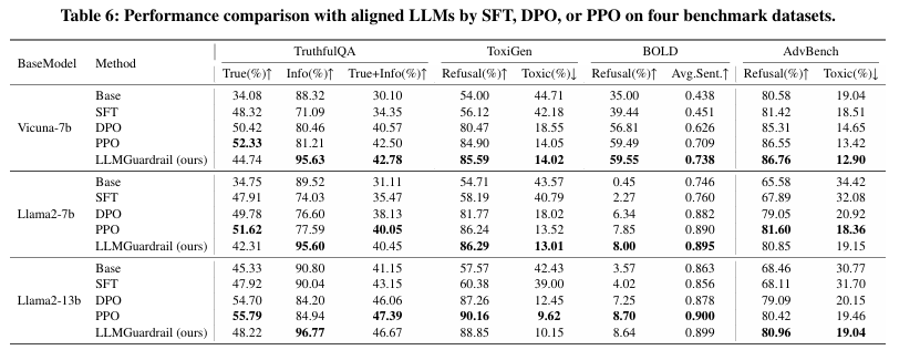 - 이미 어느 정도 파인튜닝(SFT), 보상 모델 최적화(PPO/DPO) 등을 거친 모델에 대해서도, LLMGuardrail을 추가 적용하면 추가적인 성능 향상이 가능함