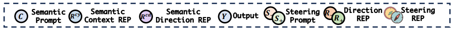 Steering Engineering을 간단하게 말하면, 토큰 생성 과정에서 특정 벡터를 삽입하여 모델 출력을 조절하는 방식으로 작동한다. 이를 구현하기 위해서 원하는 속성과 원하지 않는 속성(예: 긍정적 답변 / 부정적 답변)을 포함하는 Positive Prompt( 𝑝+ )와 Nagative Prompt( 𝑝− )를 구성하고, 각각 프롬프트를 통해 LLM에서 생성되는 표현으로 steering vector를 얻어 모델의 출력을 조절할 수 있다.